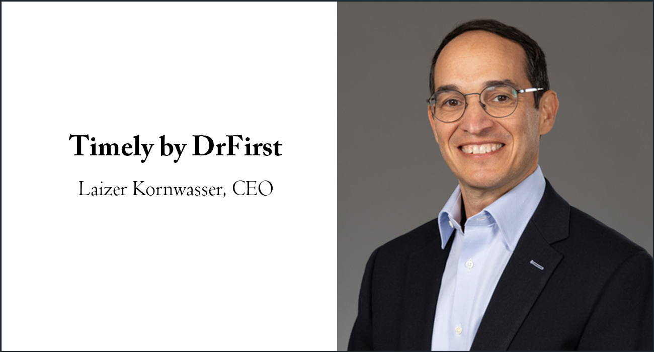Laizer Kornwasser is the Chief Executive Officer of Timely by DrFirst. Laizer Kornwasser brings over two decades of healthcare leadership experience across multiple sectors, including telemedicine, retail and specialty pharmacy, pharmaceutical companies, and PBMs. Most recently, he served as President of Enterprise Growth and Emerging Markets at Teladoc Health and previously held senior executive roles at CareCentrix and Medco Health.