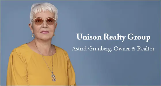 Astrid Grunberg, Owner and Realtor of Unison Realty Group, was born in Santiago, Chile, and immigrated to Calgary knowing no English. By strong determination, she learned the language and opened a number of local businesses prior to stepping into real estate in 1988. Within 12 successful years and earning recognition such as the Million Dollar Club, Ms. Astrid opened Unison Realty Group in 2000. Starting as a tiny office in her basement, it has expanded into two offices overseeing more than 800 properties. Known for her innovative mindset and commitment to change, Astrid enjoys traveling, reading business books, and spending quiet moments with a cup of tea.